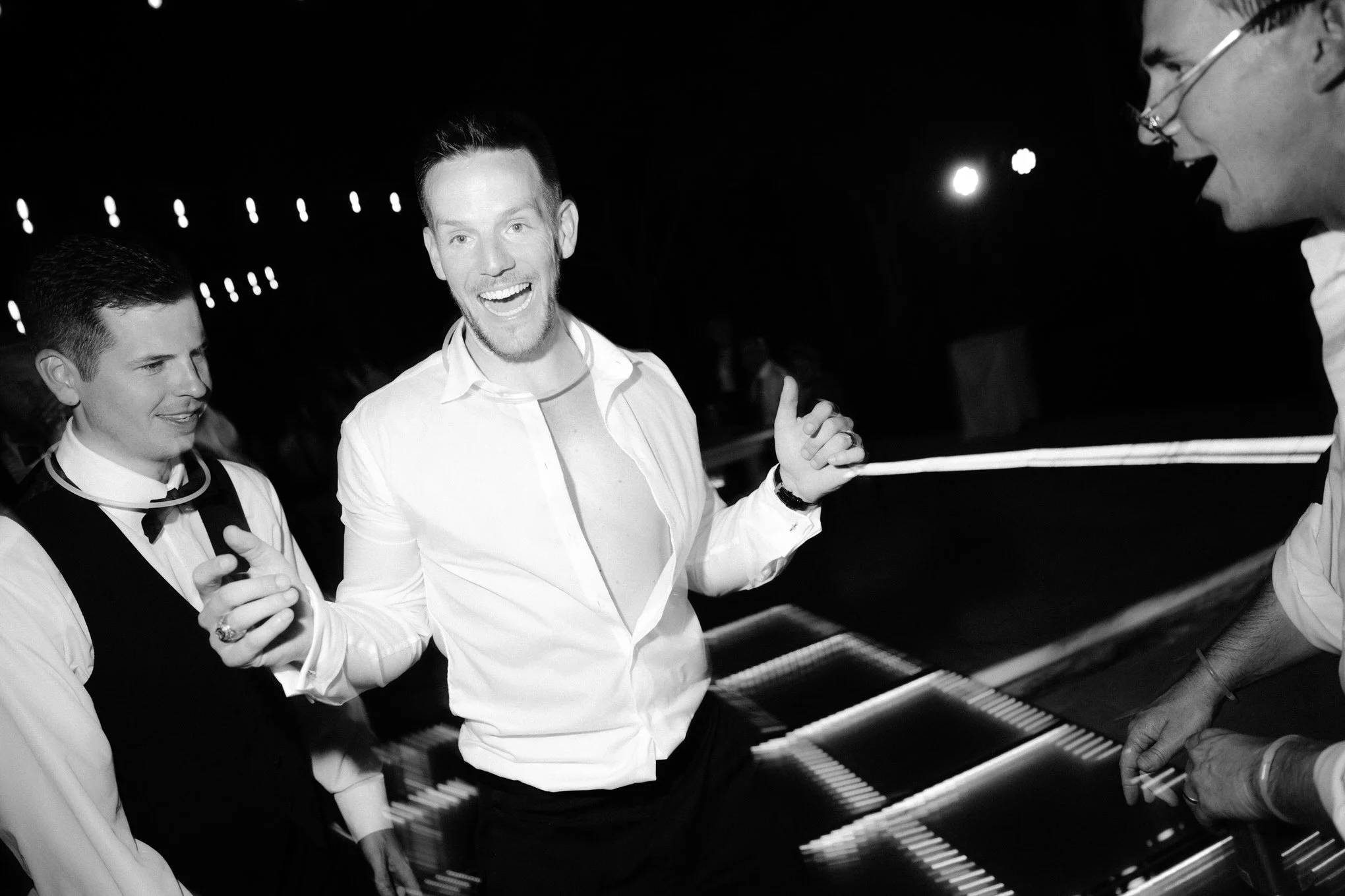 Guests dressed in elegant black attire added a refined contrast to the day’s palette of black and white, elevating the chic and modern vibe of the celebration. The choice of colors reflected the couple’s impeccable taste and desire for a timeless wedding style. Every detail, from the floral arrangements to the chic decor, was thoughtfully chosen to complement the evening's black and white theme, making the event not only a celebration of love but also a testament to the couple's exquisite taste.