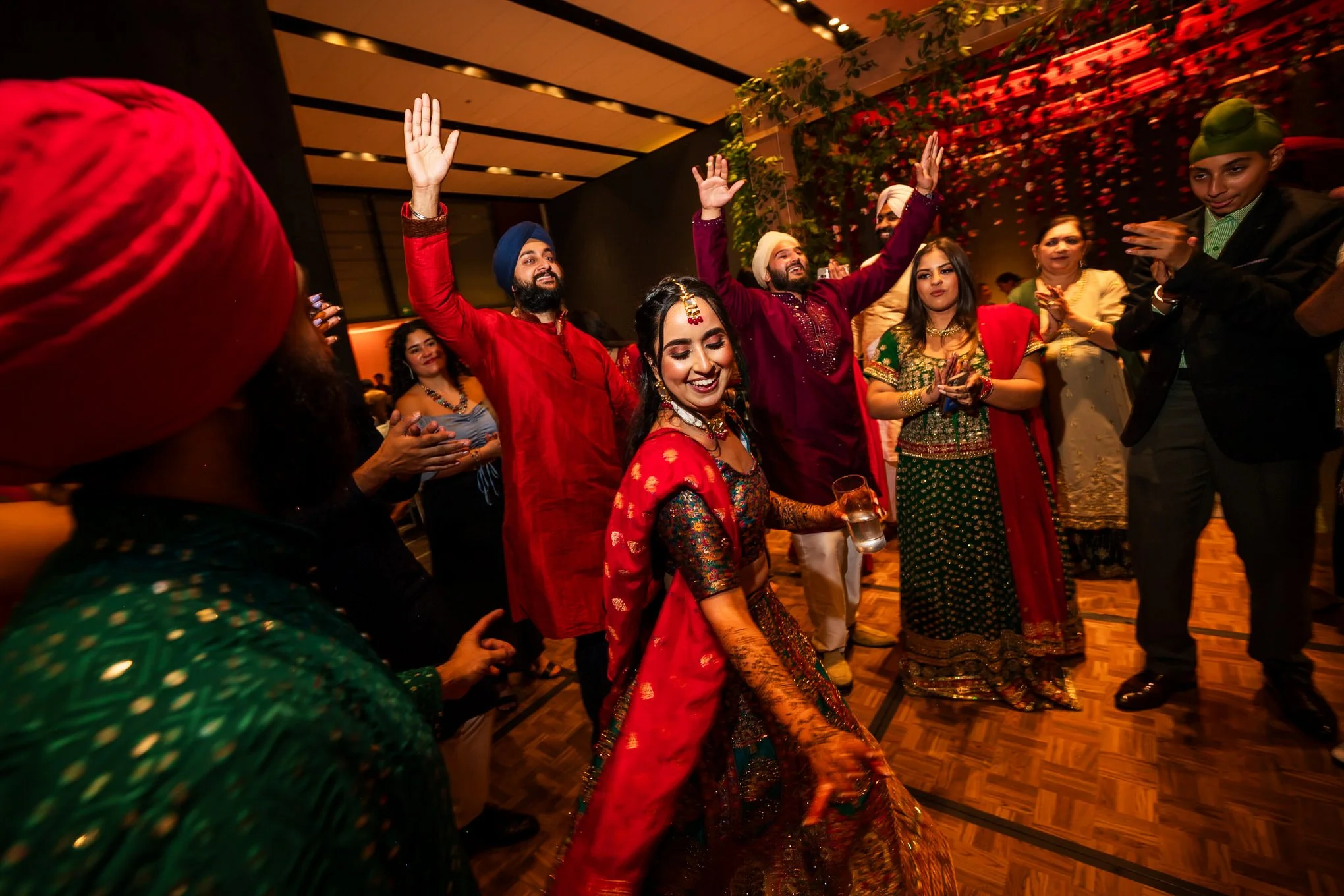 The Mehndi reception at the Hilton Reforma Hotel was a spectacle of color and joy, with red decorations setting a passionate tone for the evening. Orchestrated by Valentina Corro and featuring an authentic Indian buffet by SUVAI, the night was filled with music and dance, celebrating the union of PJ and Ikjot in a vibrant display of tradition and love.